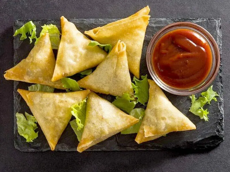 Crispy vegetable samosas with a flavorful filling.